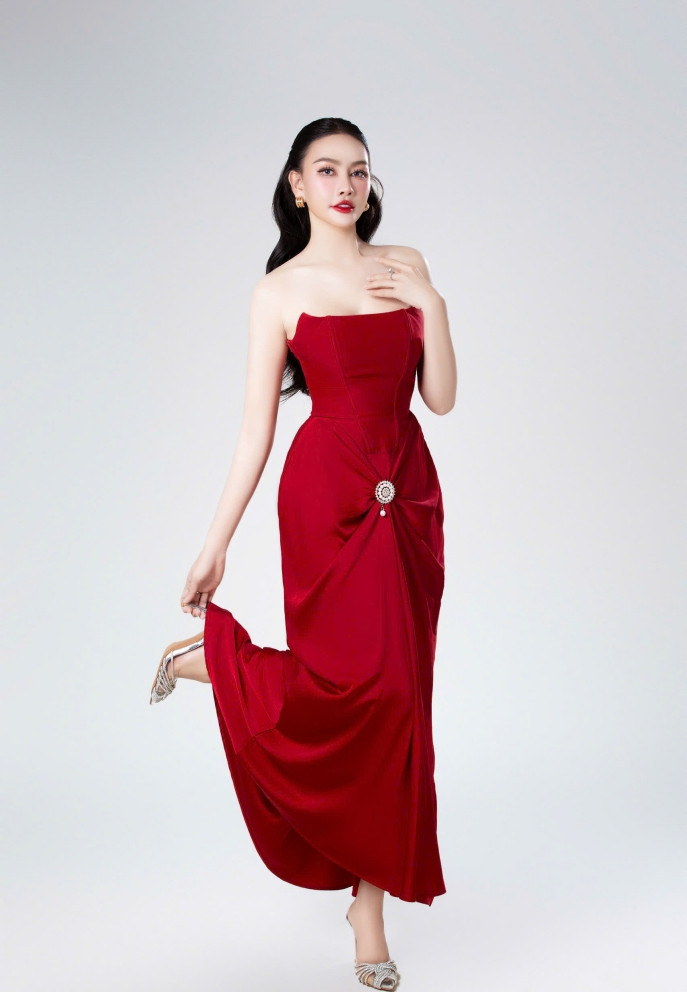 Trong bộ ảnh mới nhất, á hậu khoe sắc vóc với những bộ váy cắt xẻ, đánh dấu sự trở lại sau thời gian tập trung kinh doanh và rẽ hướng hoạt động diễn xuất.