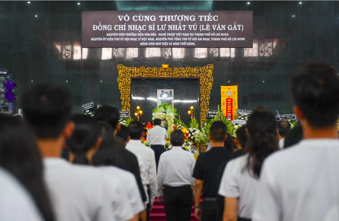 Lễ tang nhạc sĩ Lư Nhất Vũ được tổ chức tại Nhà tang lễ Quốc gia phía Nam (TP.HCM). Các nghệ sĩ Việt ở nhiều thế hệ đến tiễn biệt ông.